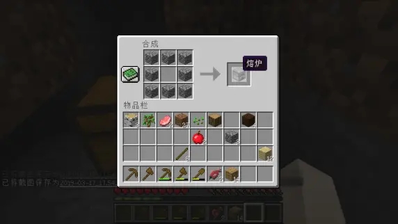 然后我们要拿出刚刚挖掘的石头,按照箱子那么摆放,就可以获得熔炉。