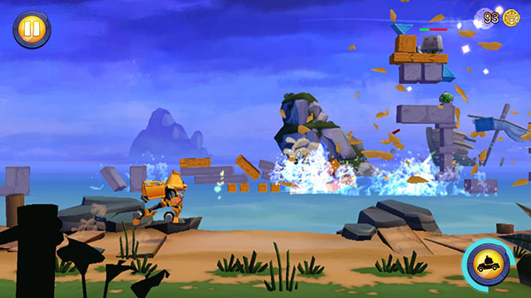 愤怒的小鸟变形金刚是一款非常有趣的横版跑酷射击游戏,在这里各种小鸟将会被机器人化,这些造型的小鸟将会现以玩具的形式首先发布,通过物理演算等方式,为玩家呈现了一种全新的小鸟玩法。相比于同类游戏,除了摈弃了传统玩法以外,操作依旧简单,玩家需要控制变形金鸟(猪)在跑酷的时候进行射击,可以通过击碎木块和冰块使建筑倾倒或者直接射击机械猪,来消灭在海上的巨蛋的抓牙机械猪。当然机械猪也是会通过射击来进行还击的,玩家的血量有五格,消耗完了就算任务失败,所以要尽可能优先的消灭拿枪的家伙。除了射击以外还有躲避元素的加入,这时候玩家需要从人型状态变成汽车状态来躲避,而变形还是有时间限制的,玩家无法长时间变成汽车形态,游戏里消灭机械猪拆建筑会得到金币和机械猪的点数累积。总而言之,愤怒的小鸟变形金刚让玩家有眼前一亮的感觉,卖萌的怒鸟与经典的变形金刚结合让游戏充满了怀旧感,而全新的游戏模式和操作模式让大家对于小鸟系列有了新的认识。