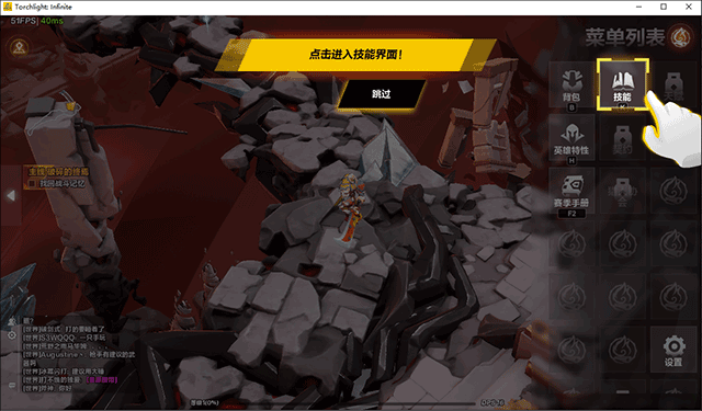 9、现在,玩家需要学会如何装备技能,首先点击右上角的技能选项;