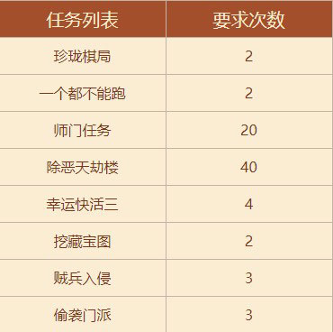 ②为了节省跑图的时间,少侠可以先完成【一个不能跑】5次,再完成【除害】5次,最后完成【剿匪】5次