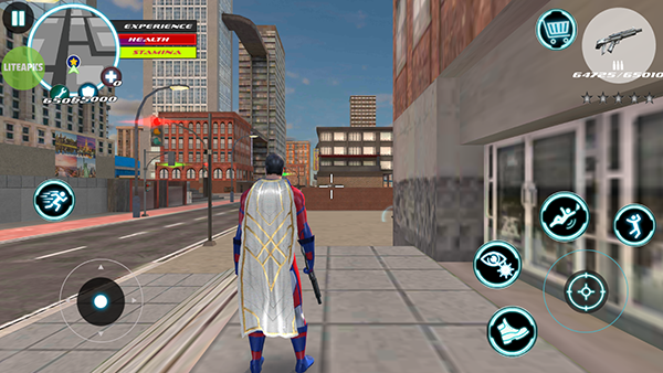 玩的时候,你得控制角色用各种按键战斗、飞行,打击罪犯。如果觉得自己的能力不够用了,就去商店买武器升级装备吧。不过要注意别乱搞,否则警察会来抓你,这样英雄也会失去群众的支持。
