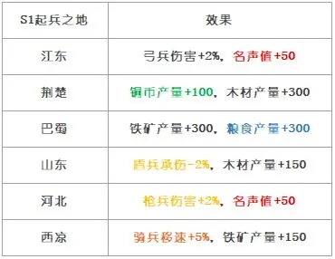 江东、河北、山东、西凉,则各拥有一个兵种效果,利于作战。