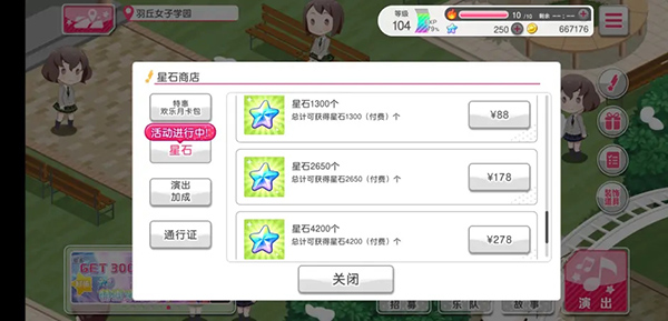 (4)试炼演出活动:活动故事可获得共计350免费星石,活动报酬共计可获得350免费星石,活动结算按名次可获得50~500不等的免费星石(我通常混一个250星石)。