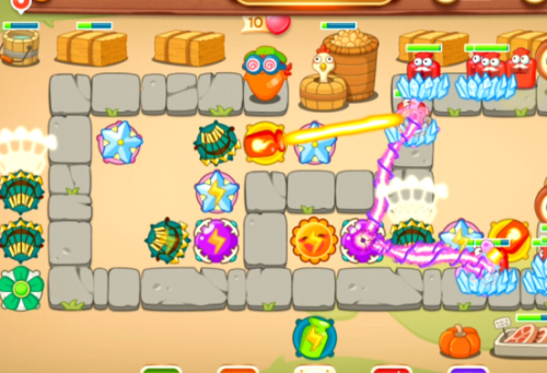 因为前期主要输出靠魔法球,所以防止万一在魔法球附近放置一个冰冻星,用来减速。这对接下来的清除障碍物非常有帮助。