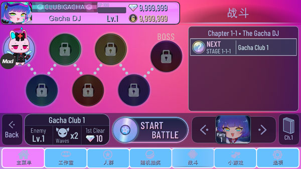 1、打开扭蛋俱乐部中文版,点击屏幕右下方,选择语言为简体中文,然后点击屏幕中间即可开始游戏;