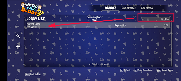 5、想要加入房间的玩家也可以在自定义模式下,搜索房间名称并进入游戏;