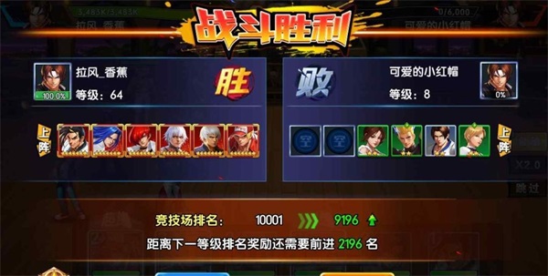 除了搭配的选择,之前我们也有提到,格斗家配置是2X3的格子,就拿上面图示的配置来说。八神和K是主力输出,娜可露露负责收割,草稚京的伤害减免能很好的保护八神的安全,加上八神本身自带吸血效果,可以持续不断的提供输出,而有着极限格挡和不死之躯称号的拉尔夫虽然输出不高,但是靠着极厚的血量站在前排可以为后排缓解压力。