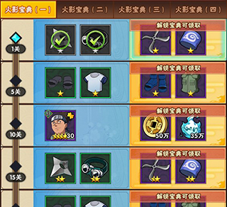 4、每通过一定的关卡,玩家还能领取奖励,内含装备、忍者等。