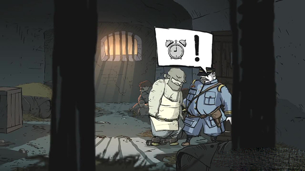2、来到火车站后可以说是进入正式游戏部分,玩家的任务就是要将欺凌左侧男子的士兵赶走,调查场景起点处的链条并向下拉动,可以将左侧的士兵赶走;
