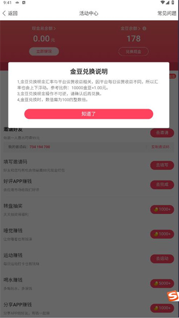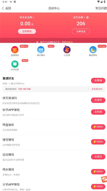 3、达到一定的金豆数量即可提现。