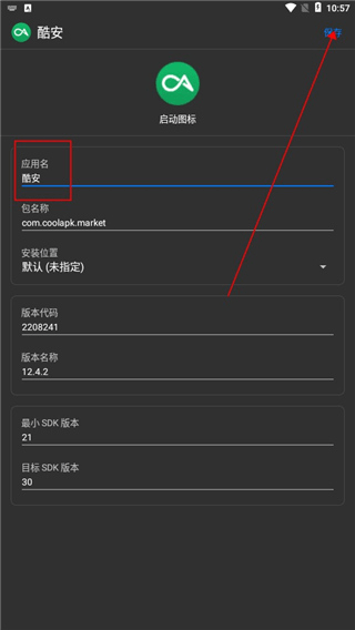 5、修改应用名之后,我们还需要点击右上方进行保存。