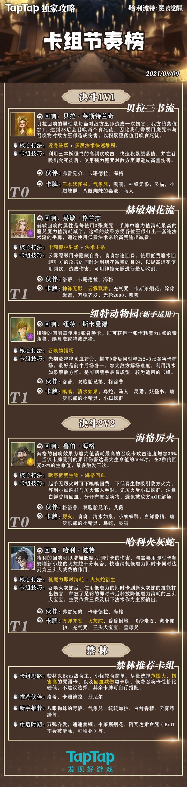 根据几次内测所整合调整的卡组节奏榜,有部分卡牌的调整以适应萌新使用(例如哈利法术流调整成了哈利火灰蛇流)!