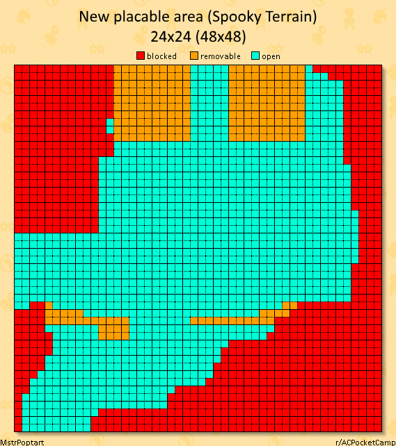 1、营地的区域为24x24(48x48),最多可放置100件物品。