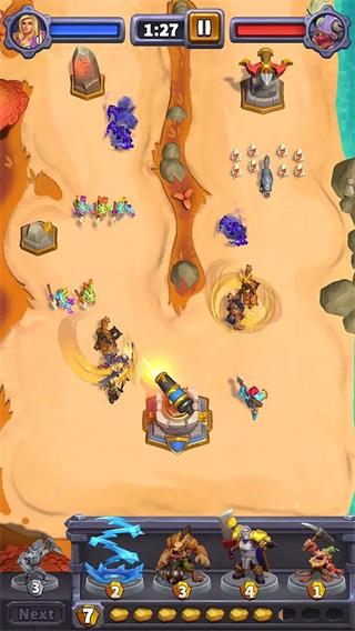 要充分利用战斗中的搭配,像是飞行兵打近战兵,攻城兵打守塔兵,就像玩war3那样,你得掌握每个单位的技能、特性。当然,游戏里还可以通过一些天赋让它们进一步强化。