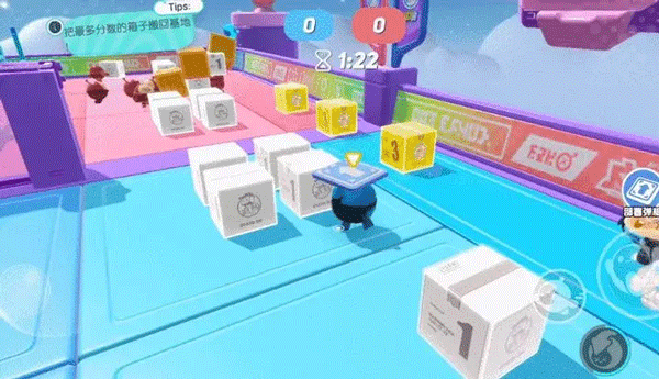 1. 巧用道具运箱子,干扰对手夺胜机比如在搬箱子这种积分赛中,场地会有一些道具可以让我们进行高段跳跃,为了胜利,这种时候我们要快速布置道具,让自己和队友都能快速搬运方块得分。