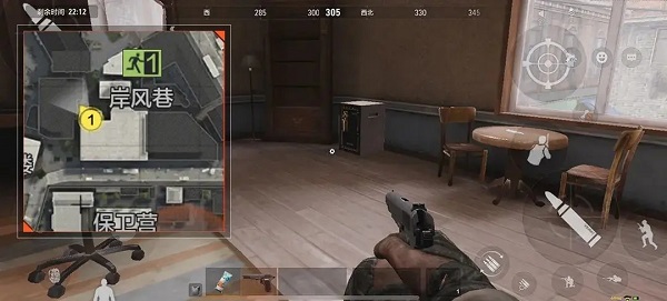 岸风巷是军港地区的中心和十字路口,这里的下水道入口(下图2号撤离点)是地图中唯一的常驻撤离点。由于下水道撤离点对所有先锋(甚至是伪装者)开放,且下水道内地形狭窄视线昏暗很容易遭人埋伏,如果选择在这里撤离一定要提前扔雷排点,避免为他人作嫁衣。岸风巷和邮局之间的广场有一架武装直升机(1号撤离点),需要前往东边街道上的军用帐篷,使用电台呼叫后开启直升机。在撤离倒计时期间,直升机引擎的声音可能会招来其他不速之客,如果选择坐直升机撤离可以利用烟雾弹进行掩护。