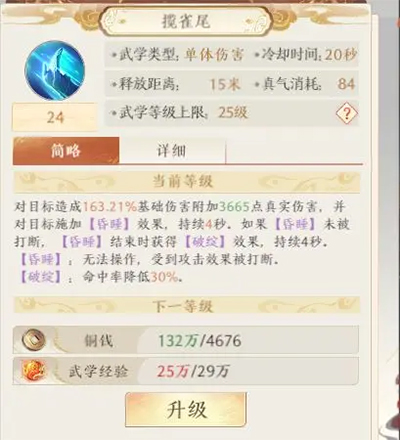 3、提升人物等级可解锁新武学和提高武学等级上限。