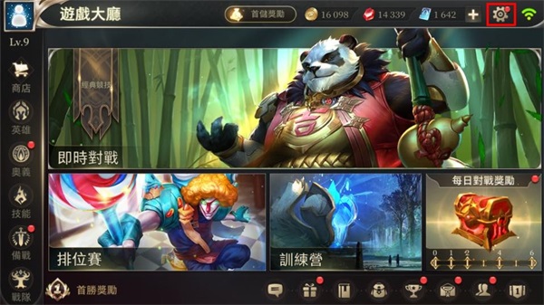 打开传说与对决后,进入游戏后,点开右上角的齿轮样设置。