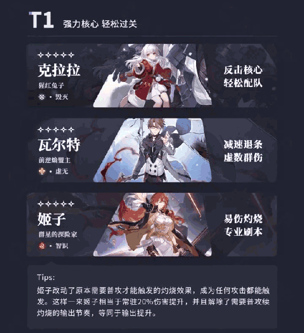 此为开荒榜单,不是强度榜单。本开荒榜单考虑35级前玩家遗器刷取困难、怪物抗性、BOSS弱点、忘却之庭需求等问题,影响很多,请根据个人理解酌情观看。