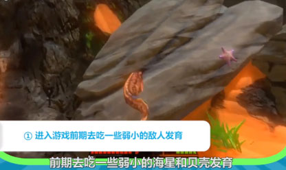 1、选择一条喜欢的鱼进入游戏,前期去吃一些弱小的海星和贝壳发育。