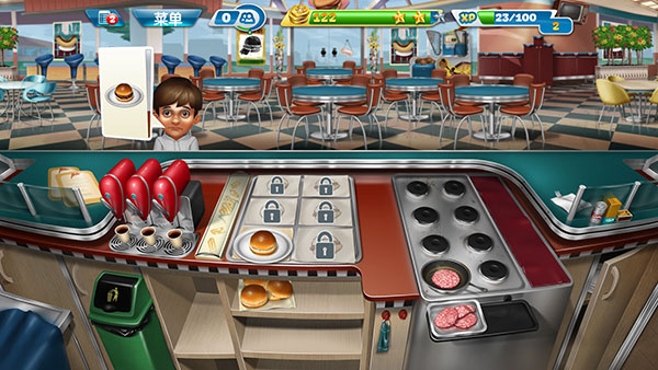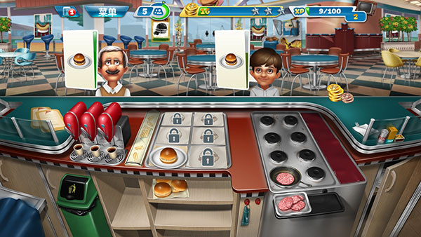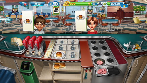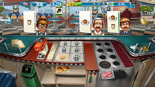 3、随着玩家不断解锁关卡,会得到更多新的食材和道具,也会越来越手忙脚乱。这里小编有一个小技巧分享给大家,很多客人会选择点套餐,而套餐中只要上了一个食物就可以增加顾客的等待时间,因此可以常备一些饮品,用于增加顾客的等待时间。