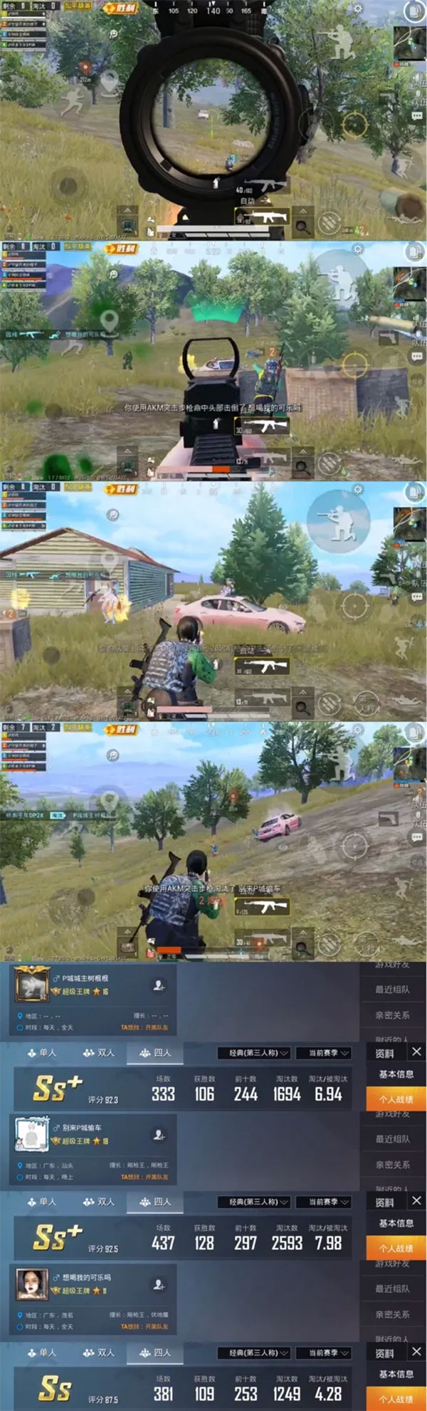 5、要注意收集信息比如决赛圈存活20名玩家,出现前五提示,则全是满遍队,存活5名玩家进前五,则全是独狼,存活玩家10以上出现前五提示,则有满遍队的概率极大,存活玩家10以下进入前五,则大概率都是残队,结果就是根据场上的状况选择战术己方队伍满遍4个人的情况下,优先击杀独狼,或者针对残队,先把人头搞到手再说,满遍不找自己就不要惹他,保不准打不过呢,先和满遍抢人头,满遍也有可能因为打残队,把自己变成残队,总之得过且过。