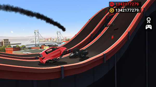 4、一定要小心驾驶,如果翻车就会发生车祸,也代表游戏结束。