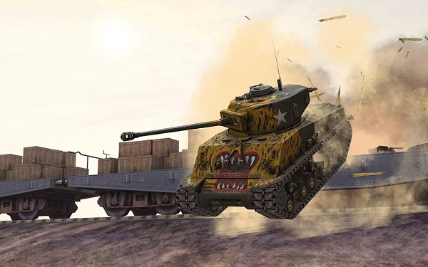 3、但59式不俗的机动也使得它可以采用一些非常规的战术,比如——高速行进撞破火车木箱,杀入敌阵夺取战绩!
