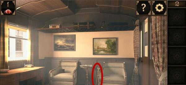 1、进入密室逃脱10第2关攻略,首先取得椅子旁边的手杖。