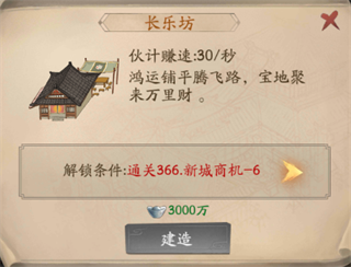 关卡的进行也是非常有必要的,游戏中我们可以看出,后面想建造商铺,一定要关卡达到规定关数才可以建造的,所以一定不要忘记去闯关!