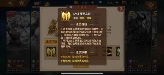 巨天使审判基础效果:以神圣之力凝聚成巨矛,对当前目标造成单体物理伤害,之后持续对其造成伤害(每秒伤害递增)
