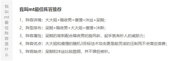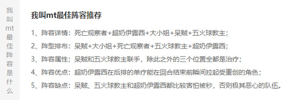 传统来说,我叫mt最佳阵容非常多,但是最实用,资源消耗最少,在实战中效果进行分析来说,玩家最佳的选择就是以下4大选择,不仅仅是伤害高,续航能力来说也并不差。