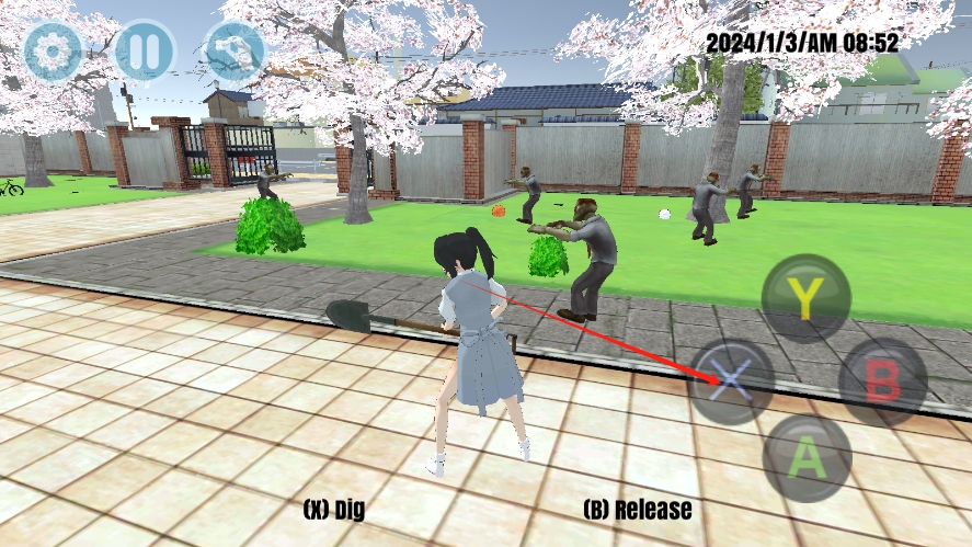 Y键是吸引无辜的学生跟着你。跟「同道我」打完招呼后,向你点点头的学生会跟着你,这样你就可以带他去一个没人的地方。当屏幕左下角显示“坐下”时,您将坐下