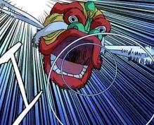 外形如舞狮头的法器,飞翔于空中,会向前发出三次类似于狮吼功的冲击波,击中则浮空。