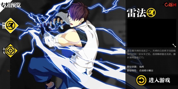 一、天师府—职业武器·拳套雷法,若选择专精雷法,那么也就擅长使用雷电之力,该流派属于近战格斗型输出。