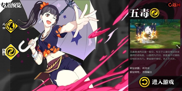 五毒,专注于以蛊虫驾驭各类毒物的修炼者,以毒物为爪牙,其毒素拥有拥有可怕的杀伤力,更能破坏神经摧毁敌人。