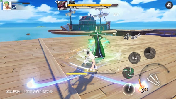 当佐罗以三刀流的姿态冲向鹰眼时,PV便开始以玩家第一视角来还原这场剑士的顶尖对决!闪避、斩击,同时通过不断地累积连击数让普攻旁的怒气值越来越高,而伤害数值也随着怒气不断上升,看来玩家还是得依靠娴熟的操作才能保证伤害能越打越高。