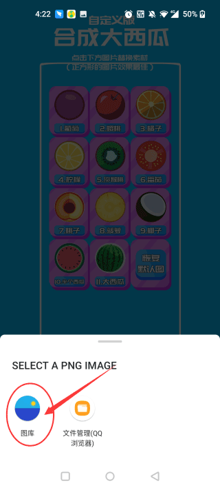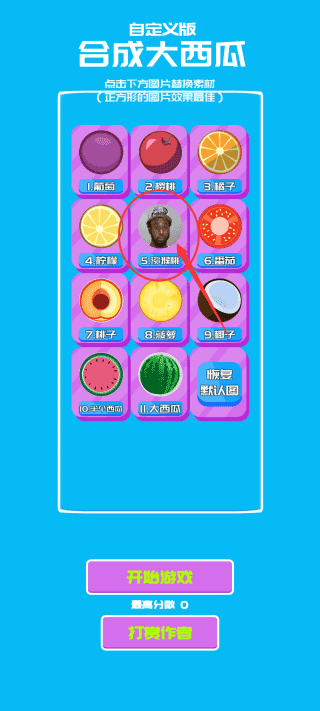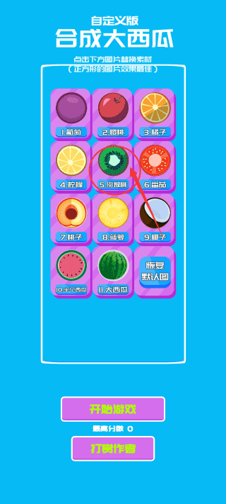 1、首先在本站下载安装好合成大西瓜自定义版,你然后点击你想替换的水果。