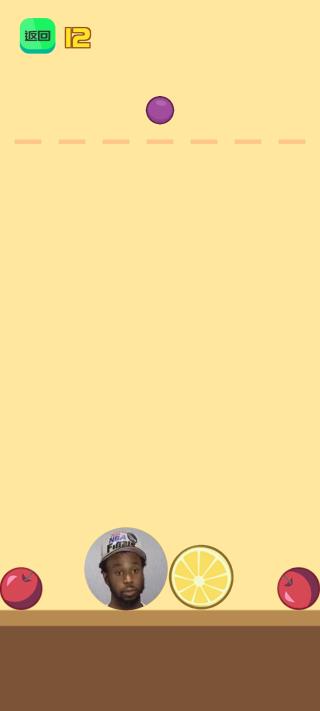 2、游戏有物理碰撞机制,两个相同的水果很近但没有合成,可以用下一个水果把它挤过去。也可以使用反射原理让自己丢出去的水果改变方向到达难以直接垂直下落的地方,即利用墙和其它的水果改变发射方向(适合插空用),因为游戏机制是碰到一下就合成,注意放的时候不要擦边别的球。
