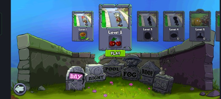 1、首先进入植物大战僵尸国际服最新版本游戏,点击石碑上方的【play】即可开玩