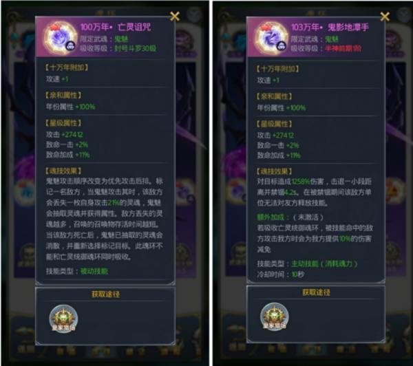 对于这个阵容的武魂在这里我只重点谈三个,蓝龙、猫鹰和鬼魅,因为三炮和泰坦武魂的魂环搭配比较常规,没啥特殊性,而且很多攻略帖子都有详细的描述。