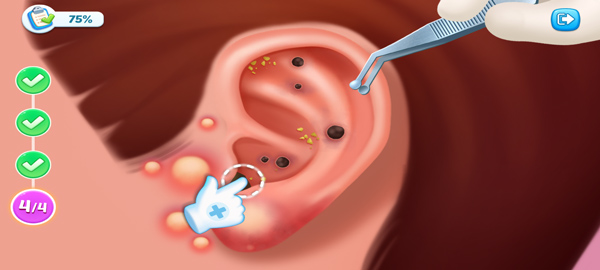 2、游戏内玩家将经营一家医院,你需要救治病人,如帮助病人清理耳朵;
