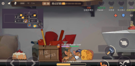 时间到了以后,玩家会被派送到原来的地方,然后玩家就需要根据地图上出现的奶酪,去找到它将它抬起来运送至洞口中,途中看到队友在推奶酪,自己也可以去帮忙推进去,人越多,推得速度就越快。
