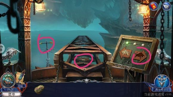 在第二个平台上面可以得到一块凹板以及一个宝石胚,得到之后点击中间的机关开始破译。