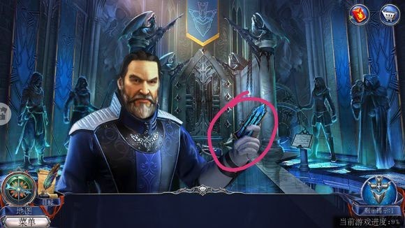 圆顶——用双目镜——根据提示找到攻击项——暗门密码
