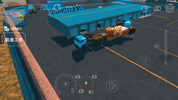 3、进入游戏后,左边控制车辆拐弯,右下角控制车辆油门和刹车以及换挡手刹等,切换到D档,放下手刹,点击油门控制车辆前进,倒车需要切换到R档。