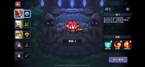 要知道虽然我的勇者有五个职业,但是刚开始游戏只能选择战士、牧师和游侠三个职业中的一个。在这里我给新手玩家推荐的职业就是战士,这个职业可谓是攻守兼备,新手玩家玩起来也不会太累。