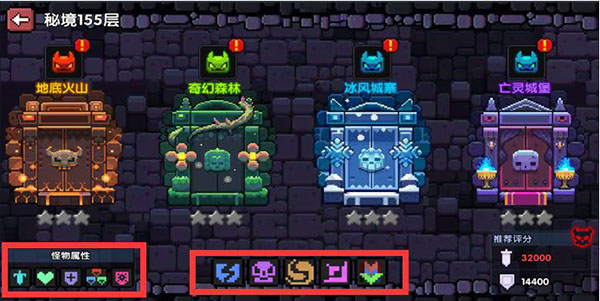 2、关卡内地图路线为随机生成,界面的右上角会有路线图显示,秘境内会随机生成精英房间的哦,如下图的红色怪物头像就代表着该方向为精英怪房间。