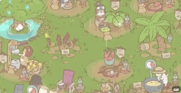 在游戏中你要和猫猫在大森林里一起做饭,热火朝天地熬汤、切萝卜、刮南瓜皮,也有的猫猫会偷懒玩吊床或者四处串门;