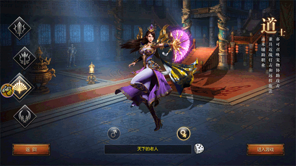 2、道士:道术辅助职业,兼具近战打击和远程施法,亦可召唤宠物协助攻击;